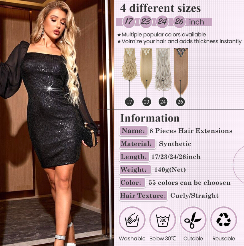 Item: A set of 8 pieces Full Head Hair extensions