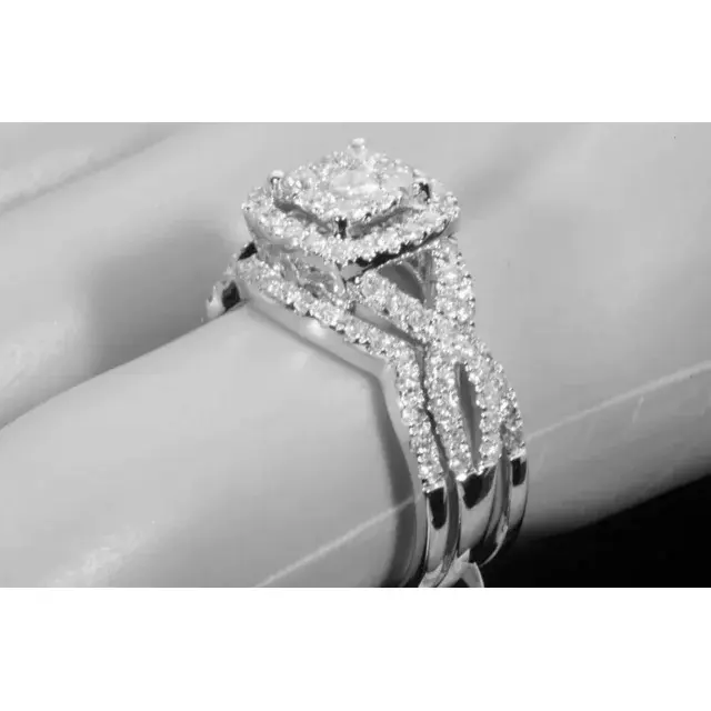 10K WHITE GOLD 1.50 CARAT WOMENS REAL DIAMOND ENGAGEMENT RING WEDDING BANDS SET