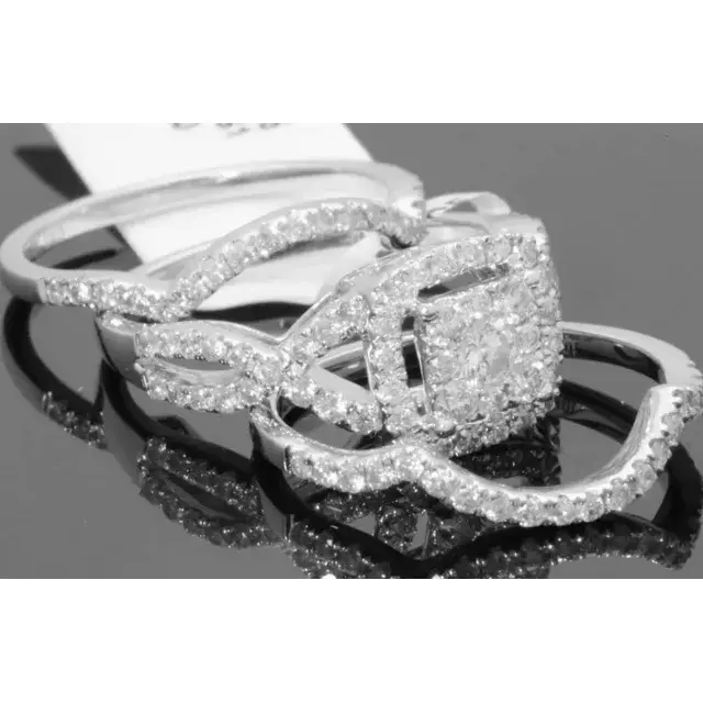 • 10K WHITE GOLD 1.50 CARAT WOMENS REAL DIAMOND ENGAGEMENT RING WEDDING BANDS SET