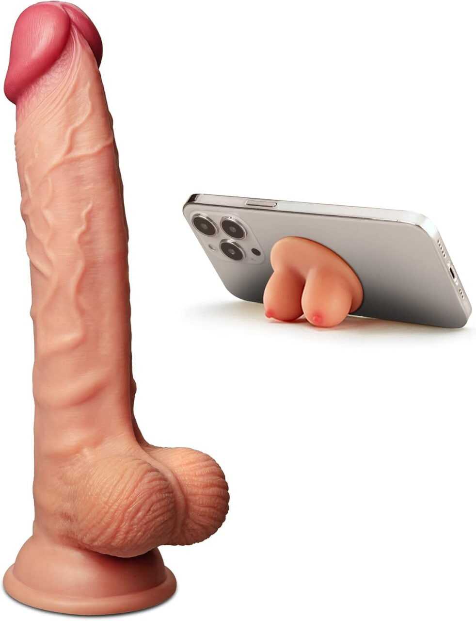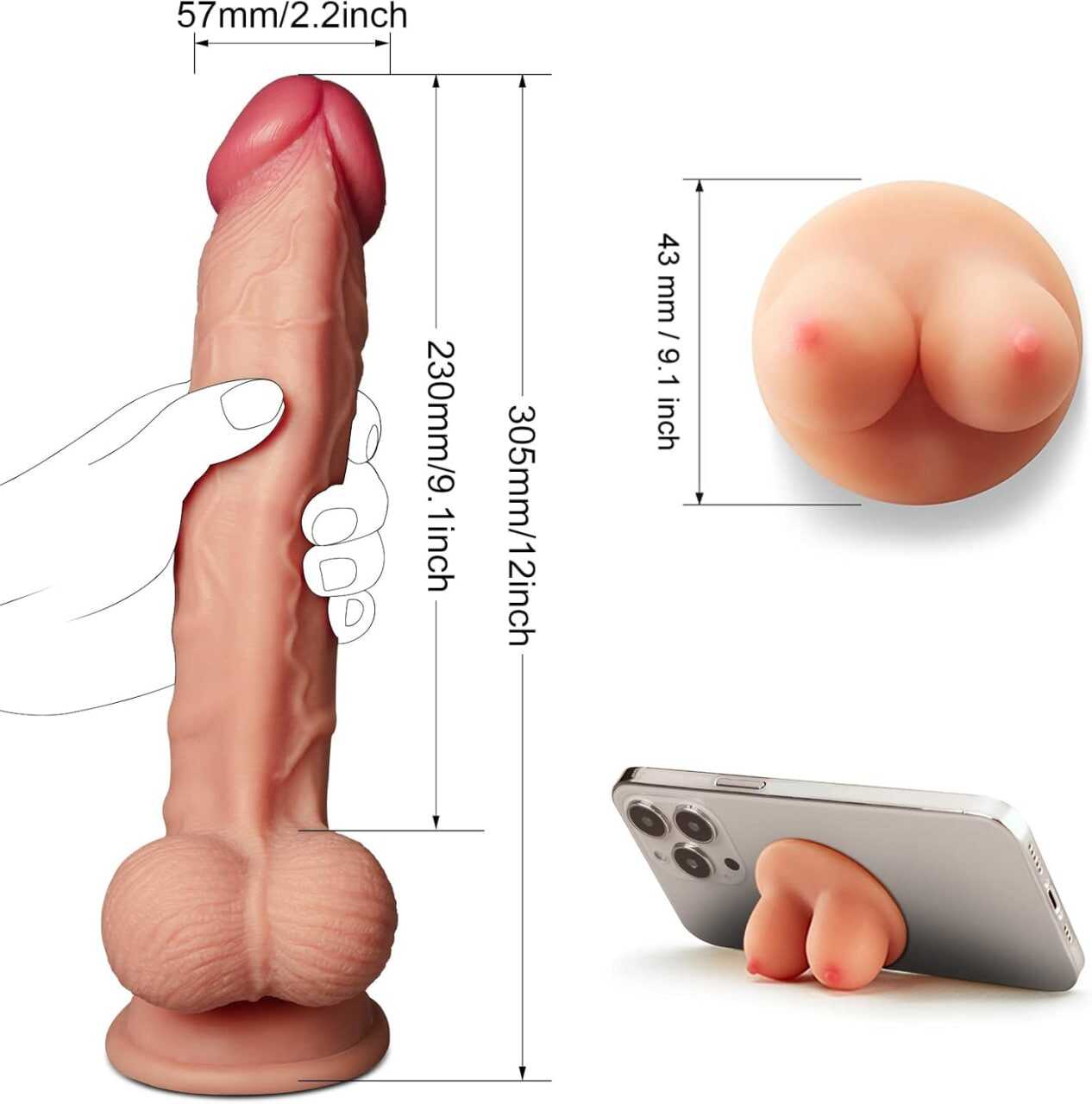 12 Inch Large Realistic Dildo, Extra Length Silicone Dildo, Double Layer Silicone Tail with 3D Balls and Strong Suction Cup, Hands-Free Didlo Masturbation Sex Toy for Women, 30.5 cm