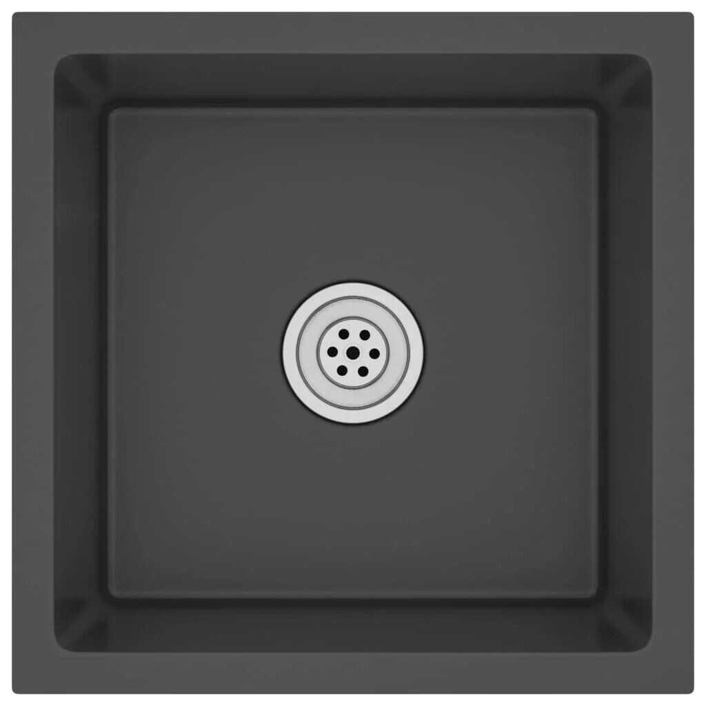 15.7" Handmade Kitchen Sink Undermount Drop-in Single Bowl Stainless Steel Black