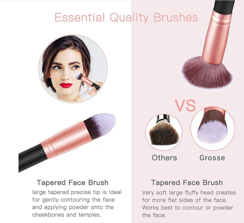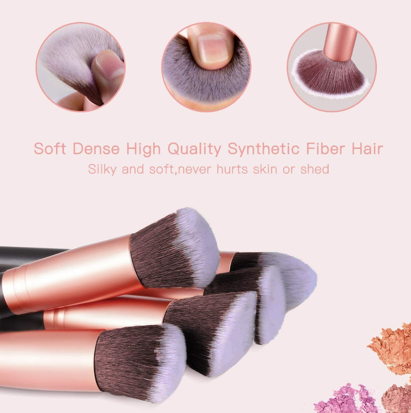 • PREMIUM SYNTHETIC MAKEUP BRUSHES: Made with soft and dense synthetic fibers to provide a high definition finish with liquid, powders or cream foundation without any absorption of product and no shedding