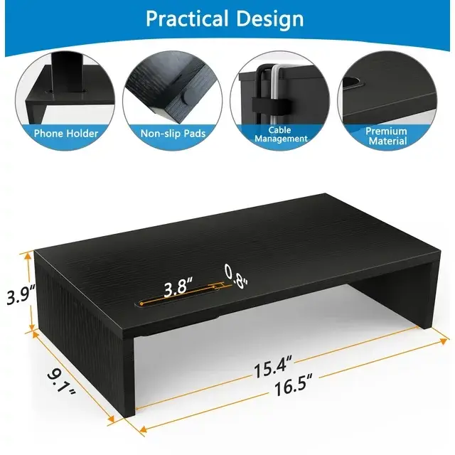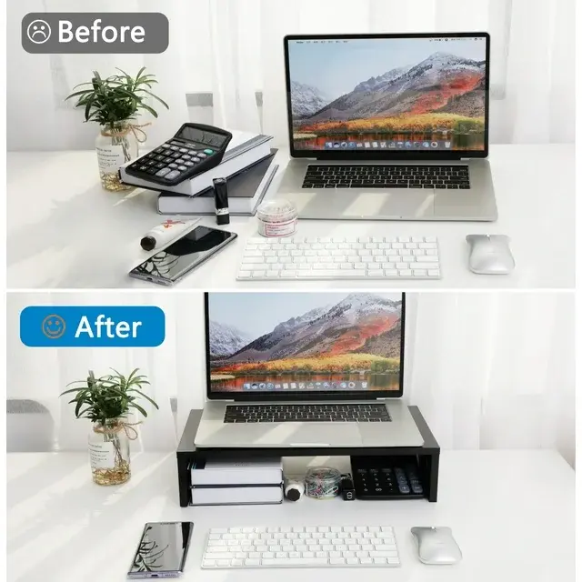 2. SPACE SAVING - With a 16.5” x 9.1” desktop surface, you could put up your monitor and store your keyboard or office supplies underneath the monitor riser, maximum utilize your desktop space, keep your items in order