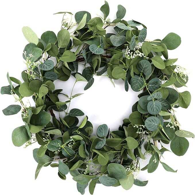 Brighten up your house: the 20 inch hanging wreath is beautifully crafted with artificial eucalyptus for an elegant modern farmhouse look, looks lifelike, can always keep fresh and stay in green for a long time, you can use it to decorate home, parties, carnival, living room, bedroom, office, home, wedding, or other important festivals, which will create a pleasant atmosphere for these places