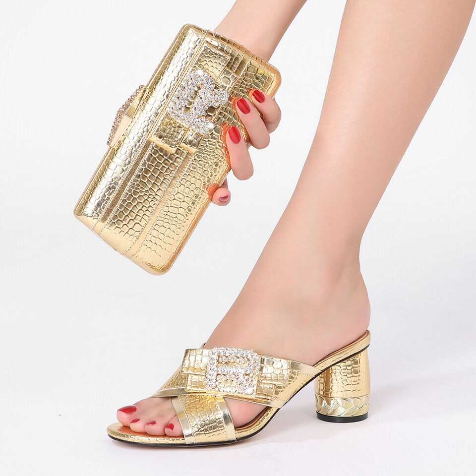 Women Sandals Luxury Matching Shoes And Bag Mid 6.5CM Italian Fashion Rhinestone