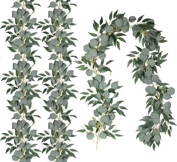 • ?【Excellent Quality】 The eucalyptus and willow leaves are alternately arranged with vivid veins. The leaves of artificial hanging vine are made of silk cloth and the stems are made of plastic. The leaves do not fall off easily, do not fade easily, have a light smell, and do not wilt, or get damaged easily.