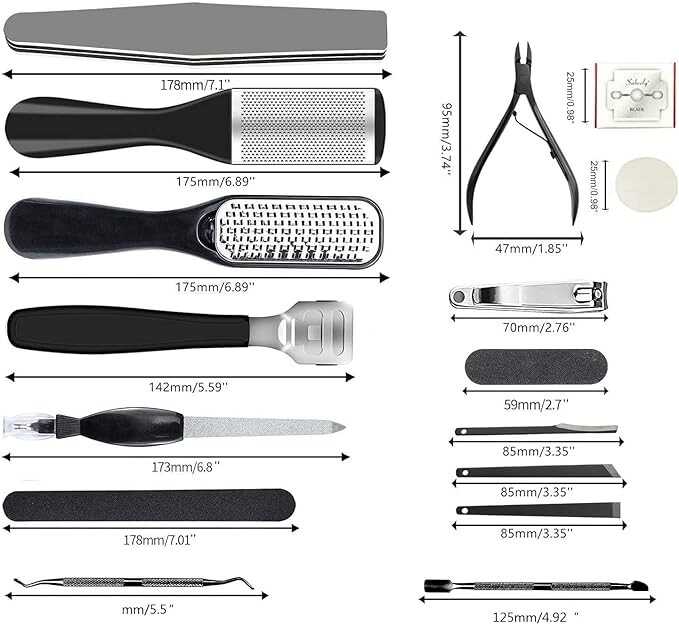 • [ERGONOMIC DESIGN] Our foot file set are made of stainless steel and ABS material, very sturdy and durable. Each tool is designed for special function, with small and lightweight design, holding comfortable, easy to operate, can be also used for indoor and outdoor use.