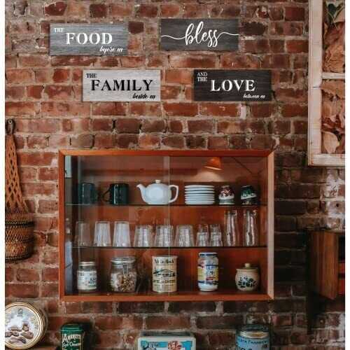 4 Pieces Bless Food Family Love Signs for Kitchen Wall Decor Plaque