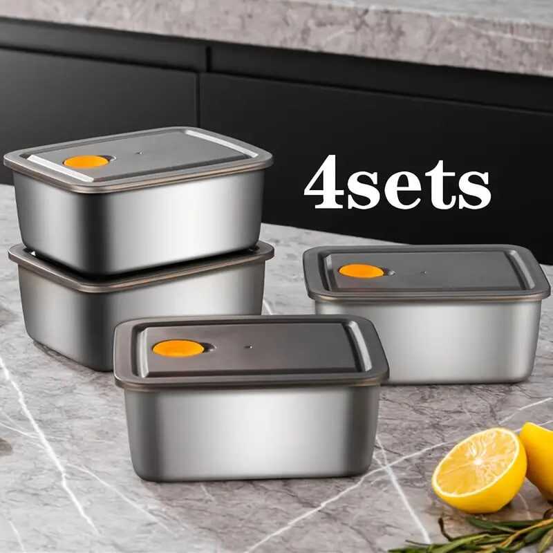 4 sets stainless steel fresh keeping box refrigerator cooler storage box sealed anti overflow bento box picnic lunch box meal prep square box for camping picnic and beach home kitchen supplies details 84 sets stainless steel fresh keeping box refrigerator cooler storage box sealed anti overflow bento box picnic lunch box meal prep square box for camping picnic and beach home kitchen supplies details 8