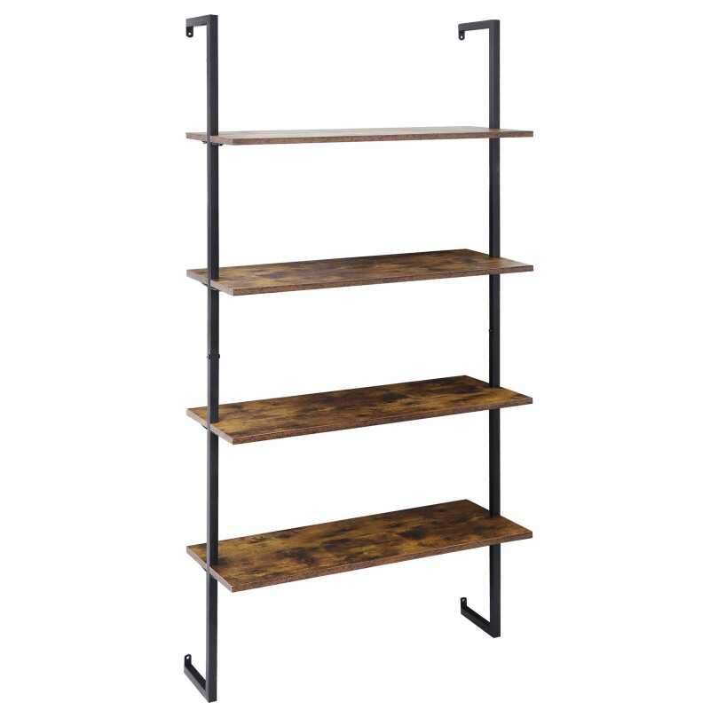 4 Tier Pipe Bookshelf Wall Mount Shelf Floating Bookcase Industrial Metal Frame