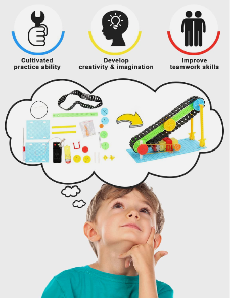 • Develop practical ability and imagination:By assembling these motorized STEM Toys can cultivate children's hand eye coordination ability and intellectual development, stimulate children's imagination.