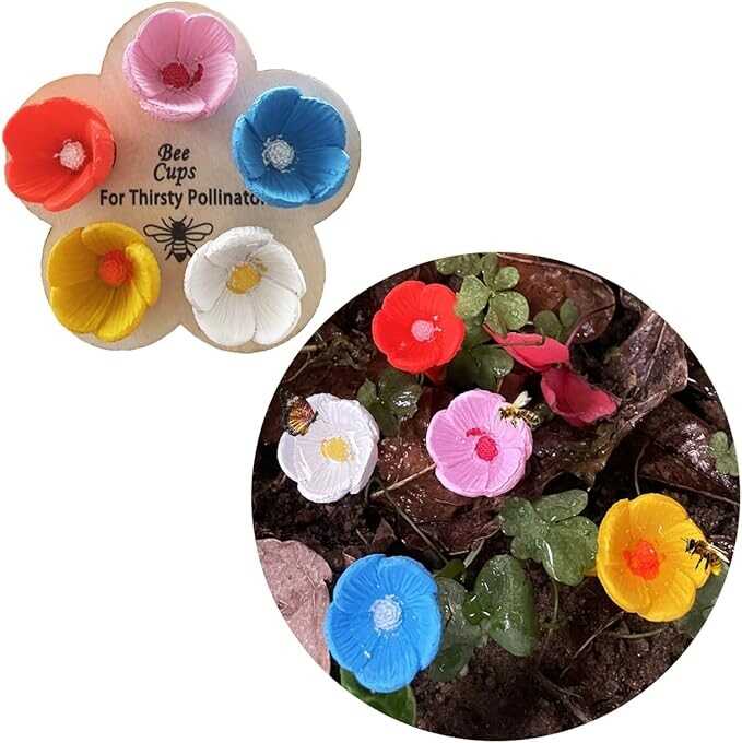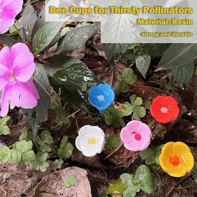 5 Packs Bee Cups for Garden, Resin Bee Watering Station, Pollinator Watering Cup for Outdoor Garden Courtyard Decor