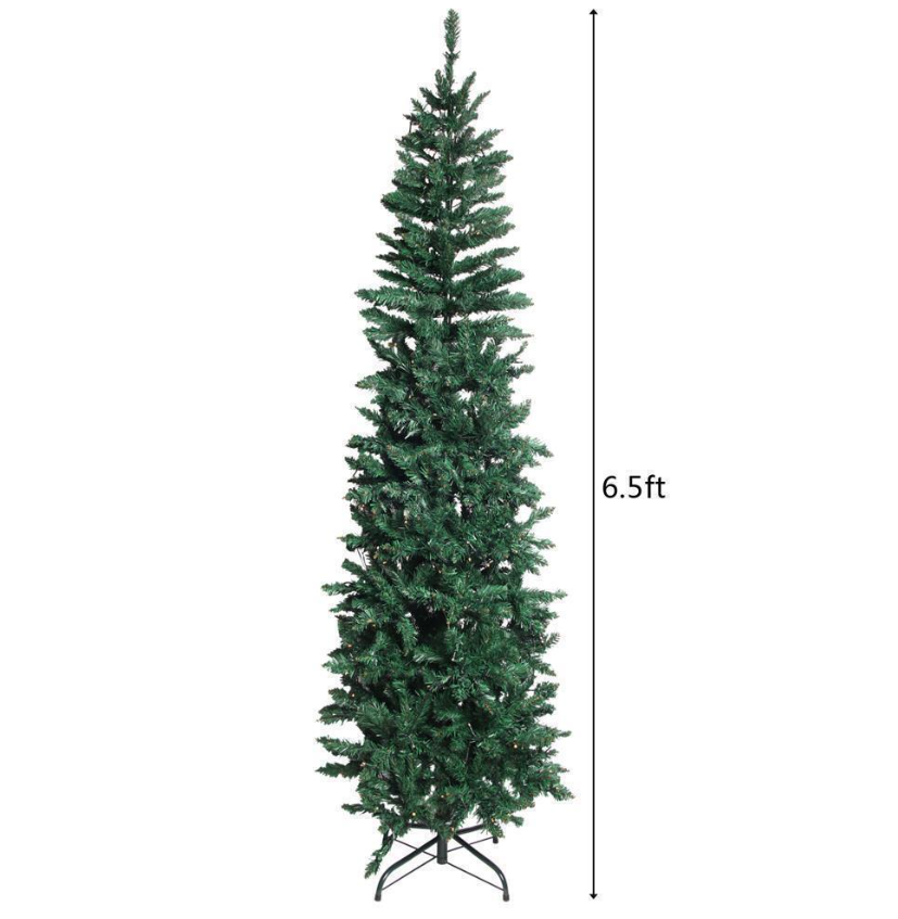 6.5Ft Pencil Christmas Tree Green Branches W/ Lights Holiday Decoration