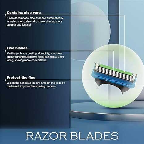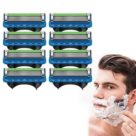 8pcs Blades for Men.Razor Blade Refills for Gillette Fusion 5,For a More Comfortable Shave, Blue-06