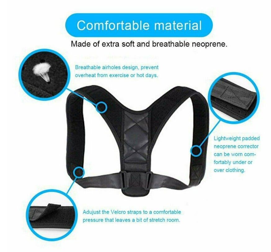PERFORATION DESIGN,BREATHABLE,COMFORTABLE:The postural correction belt is made of very soft composite fabric and nylon tape, and breathable holes are adopted in back and shoulder straps. Heat dissipation and permeability have been upgraded to improve the comfort of wearing