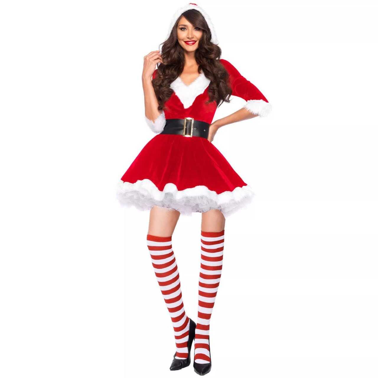 Adult Sexy Women Christmas Stage Show Uniform Costumes Set Skirt Dress Plus Size