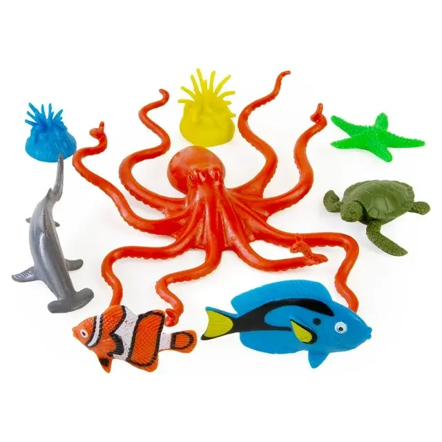 • Jumbo-sized bucket filled to the brim with ocean-life animal toys and play accessories