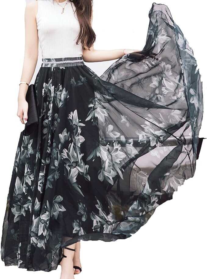 • Lightweight chiffon swing summer beach long skirt,It can be worn with tank tops, t-shirts, bikini, sandals, straw hat, flats, heels etc.