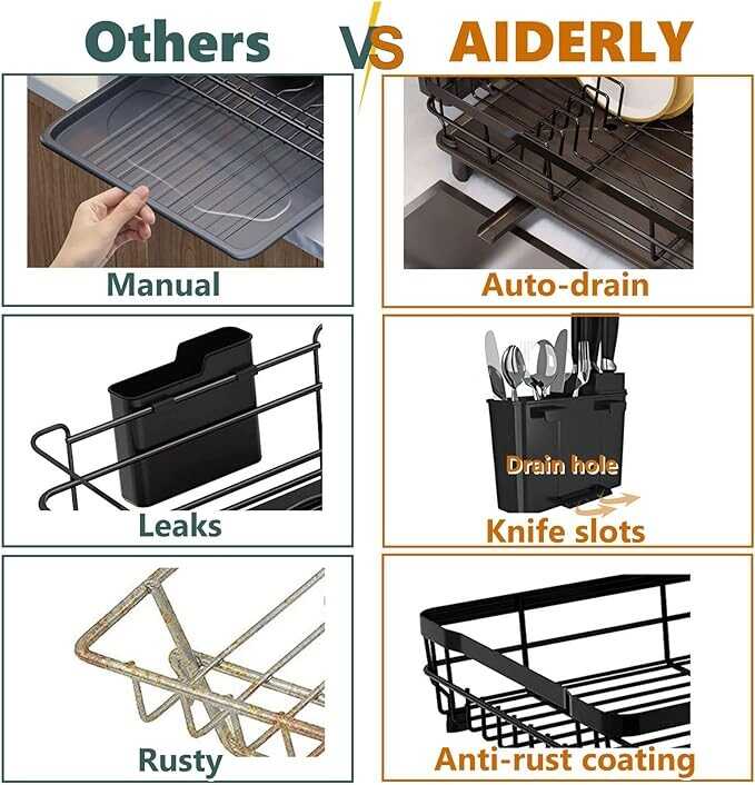 • Easy to Assemble: Packed with racks, water collector tray, utensil holder, knife slot, and drainage board feet, Only took 5 minutes or less to get it all put together, no extra tools needed