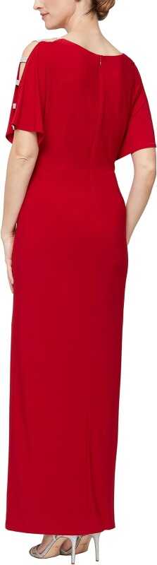 Alex Evenings Women's Plus Size Long Knot Dress with Embellished Short Sleeve