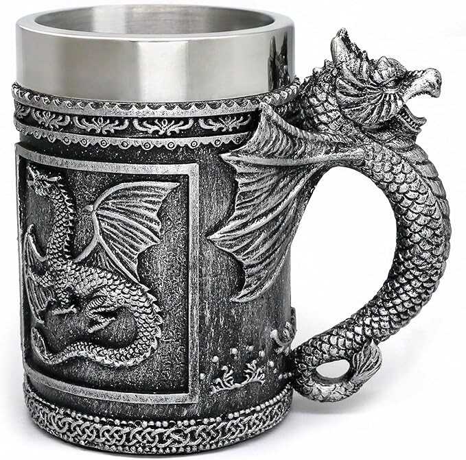 • COOL DESIGN - Double-sided 3D three-dimensional flying dragon roaring design, retro silver and pattern engraved details, make the whole more exquisite and domineering. The handle adopts a unique thickened dragon body design, engraved with realistic dragon scales, making it easier to hold and support the cup when drinking.