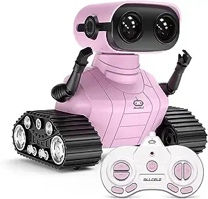 ?Fantastic Appearance: This cute and funny robot is design in 2 part. The upper part is a cute robot with a pair of LED eyes and the gesture can be adjusted.The bottom part is a pair of tank tracks. Besides, we adopt a exquisite packaging for this robot. It will be a great birthday or Christmas gift for your kids. Robot Size:4.9*3.4*4.7 inches.