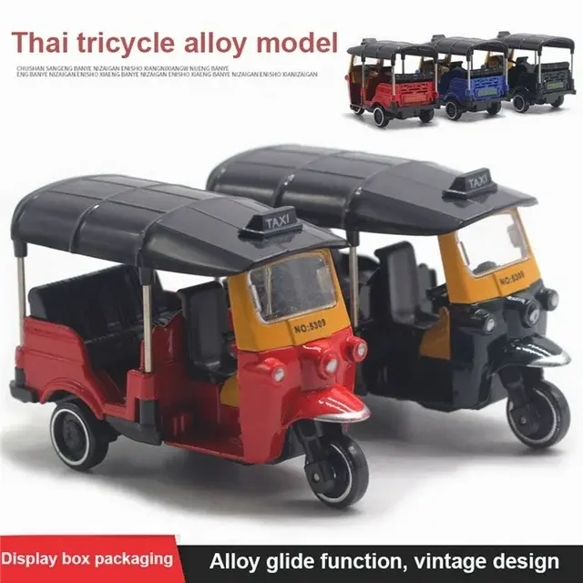 Alloy Tricycle Retro Simulation Model, Three Wheeled Motorcycle, Car Model Toys for Kids