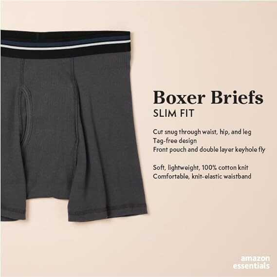Amazon Essentials Men's Tag-Free Boxer Briefs, Pack of 5