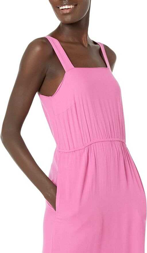 ESSENTIAL SUMMER DRESS: This versatile and figure-flattering dress seamlessly transitions from day to night. Pair with your favorite sneakers for a day exploring the city or dress up for an evening out with Amazon Essentials Women's Two Strap Heeled Sandals.