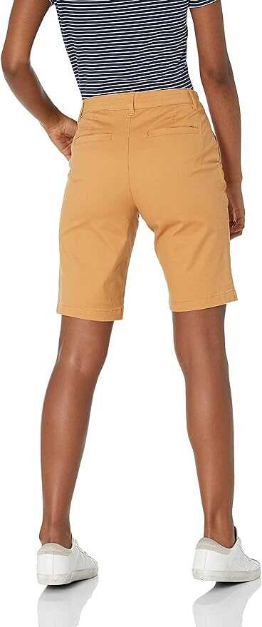 • CLASSIC BERMUDA SHORT: These classic chino shorts offer a stylish, longer length silhouette, perfect for spring/summer dressing at work, weekend exploring, or running errands. Complete your look with Amazon Essentials Women's Sneakers or Sandals.