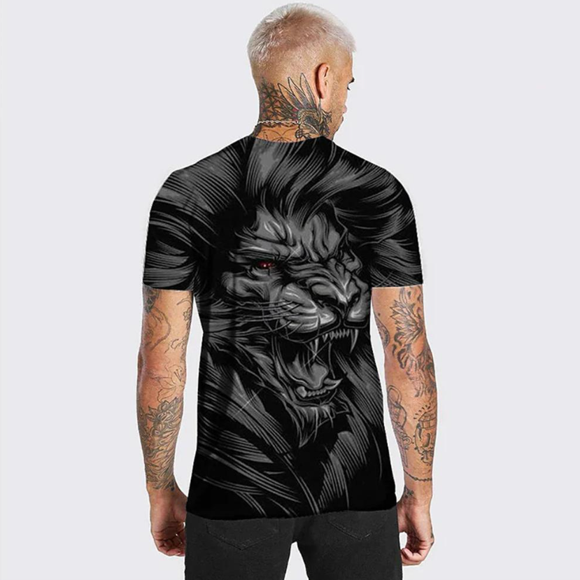 Introducing this captivating men's 3D printed t-shirt, a must-have addition to your summer wardrobe for embracing the wild and bold fashion. The lifelike 3D printed image of an animal lion makes this t-shirt stand out, adding a unique and daring statement to your summer outfits.