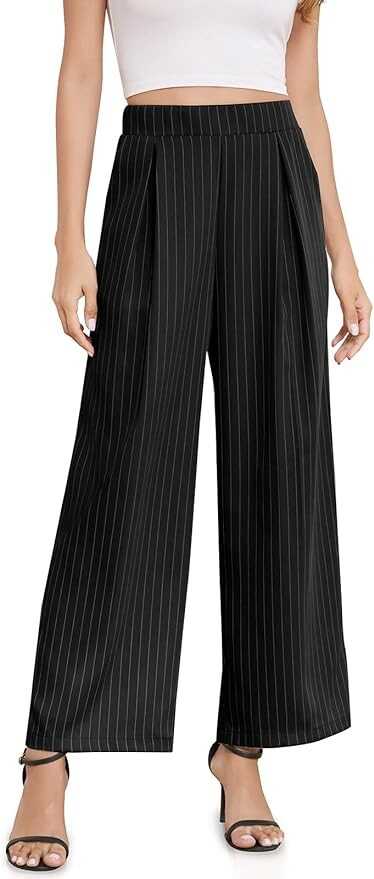 • Unique Design : High waisted pants for women, Deep Side pockets, Front Pleats, Back Darts, Elastic Wasitband, Wide Leg Pants for Women. Flowy pants for women make you look more atmospheric, modify the imperfect leg shape, and hide the belly fat.