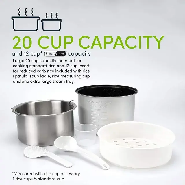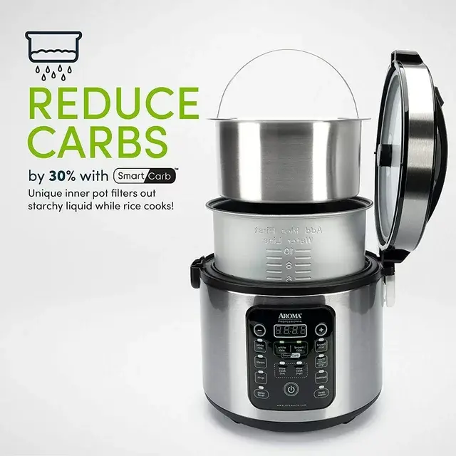 Enjoy easy home cooking with the Aroma 20-Cup (Cooked) SmartCarb Digital Rice Cooker and Food Steamer. Restaurant-quality rice. Healthy steamed meals. Delicious one-pot dishes. Includes SmartCarb function that reduces up to 25% of carbs. Prepare all this and more at the touch of a button! Aroma takes the "cook" out of home cooking - turning kitchen time into your time! Help the kids with homework, get creative at play time or pick up that novel you've been waiting to dive into. All while delivering hot, hearty and healthy meals the entire family will love.