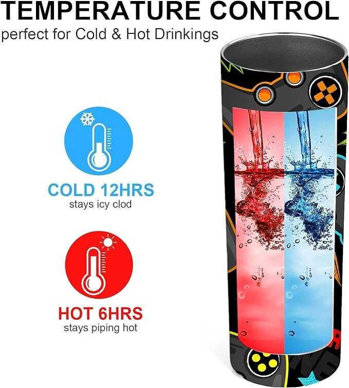 ATHAND Gifts for Gamer Men Women, Gamepad Game Insulated Skinny Tumblers with Lid,The Best Player 20 Oz Travel Vacuum Coffee Mug,Funny Quotes Video Game Cups Men Friends