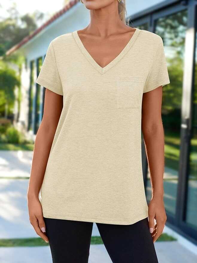 • Occasion: Casual V neck tshirts, perfect for daily life workout travel running lhome office vacation sport/gym/yoga/going out. A basic spring summer outfits tees that suitable for all occasions.