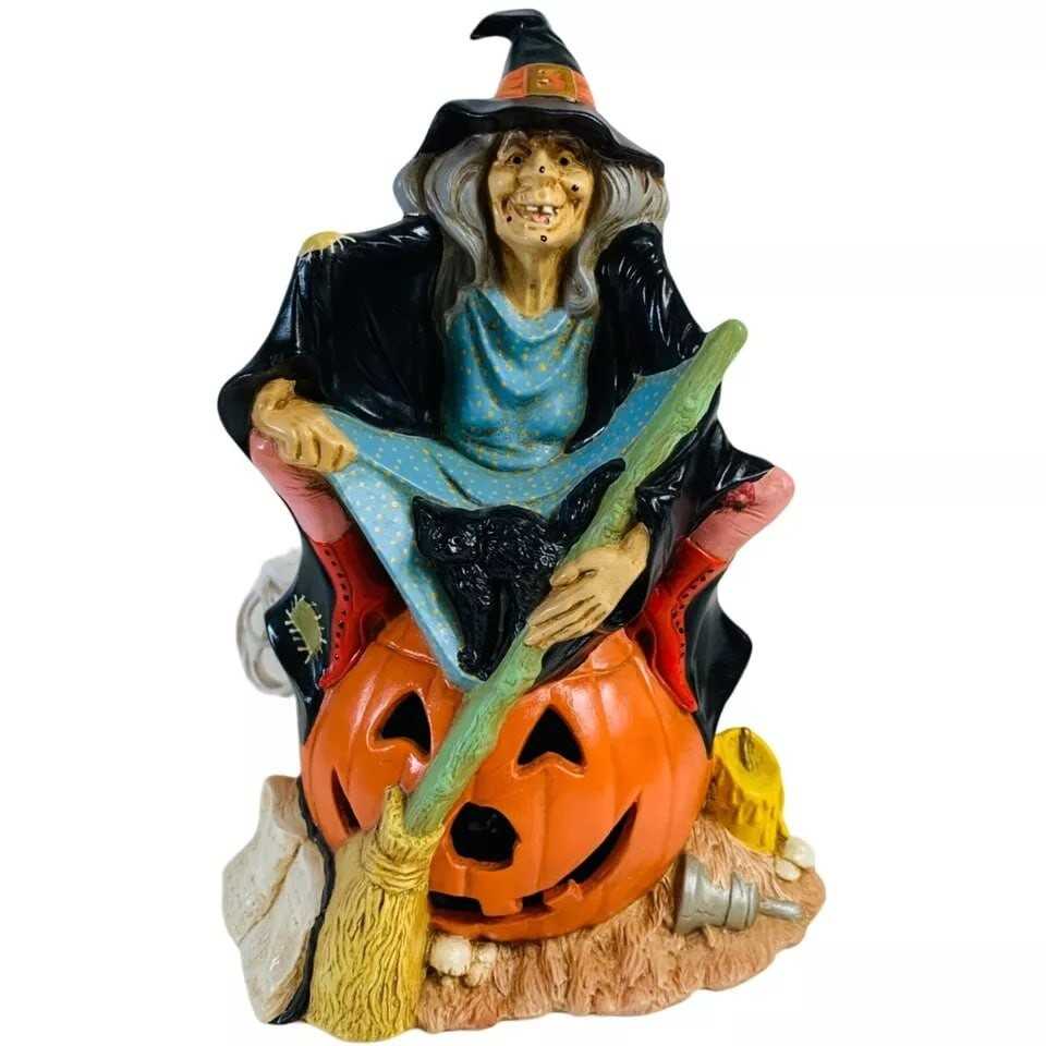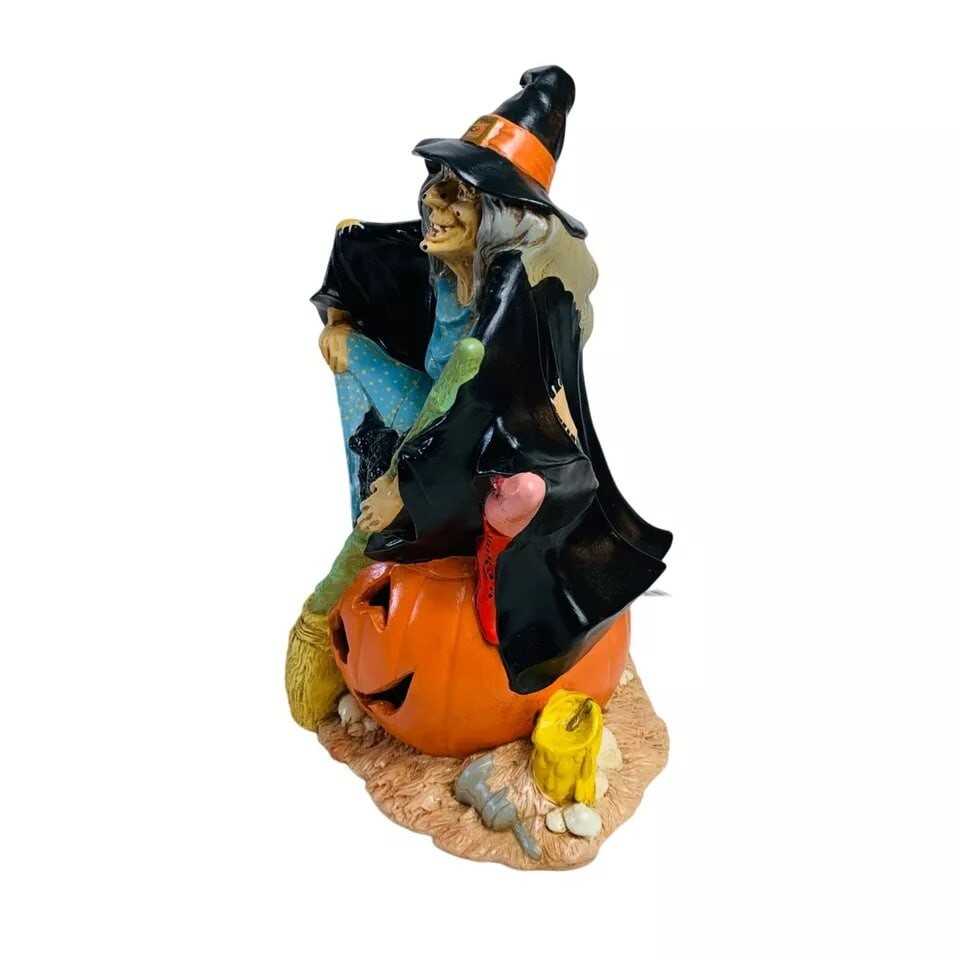 Once upon a moonlit Halloween night, this enchanting witch figurine was crafted with meticulous detail. Perched