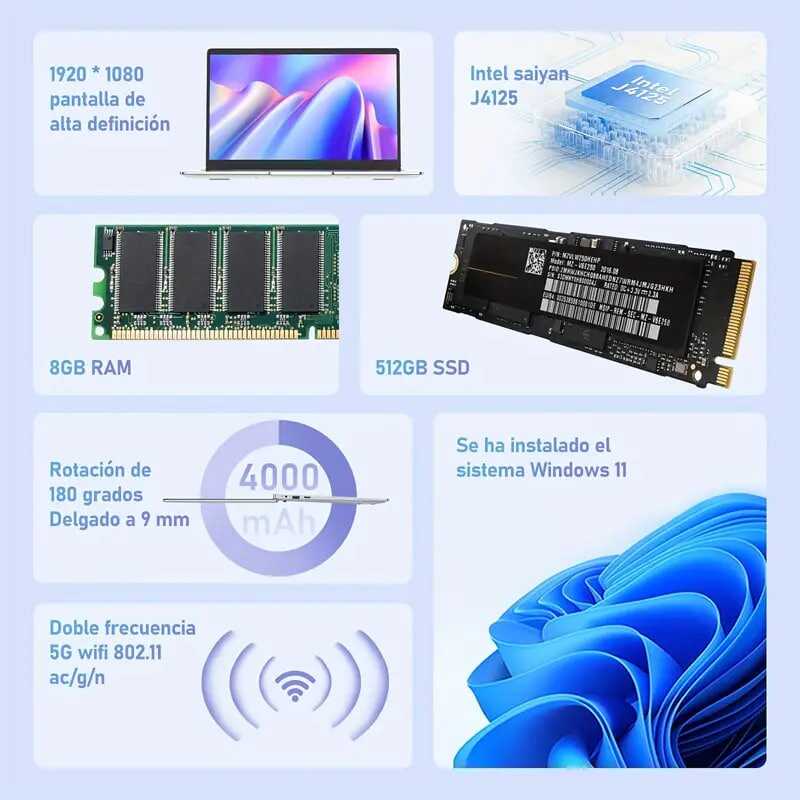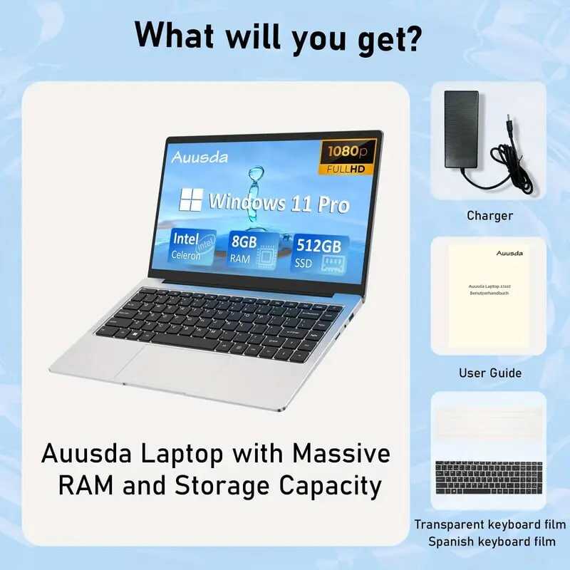 Auusda Laptop With 8GB LPDDR4 512GB SSD, Intel Celeron J4125 Up To 2.5 GHz, 14.1 1920x1080 IPS, Webcam, Mini HD, USB-A X 2, Micro SD Card Slot, Windows 11 Pro, Expandable Storage details 1Auusda Laptop With 8GB LPDDR4 512GB SSD, Intel Celeron J4125 Up To 2.5 GHz, 14.1 1920x1080 IPS, Webcam, Mini HD, USB-A X 2, Micro SD Card Slot, Windows 11 Pro, Expandable Storage details 1