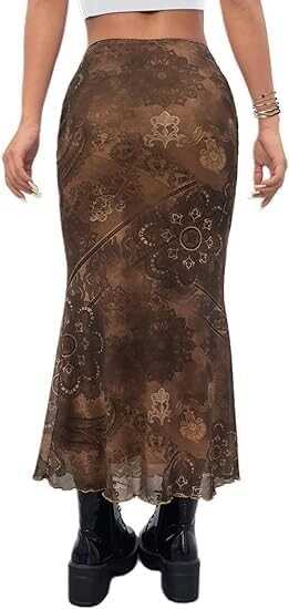 Features: Mesh skirt for women, feature with floral printed and lettuce trim hem design, double layer, high waisted, elastic waist, bohemian skirt is perfect to show off your figure