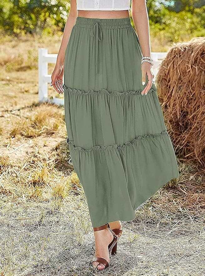 • Features: High waisted skirts for women, layered frill trim swing skirts, ruffle pleated maxi skirts, long flowy skirts above ankle length, elastic waist with drawstring decoration, casual loose fit