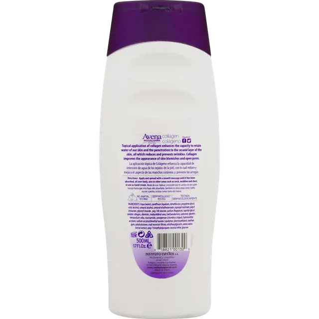 • The ability of our MOISTURIZING lotion helps to firm your skin to minimize the appearance of fine lines and blemishes. Recover your natural luminosity with our Collagen Body Lotion by Avena, Instituto Español.