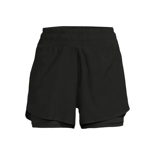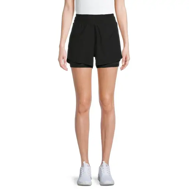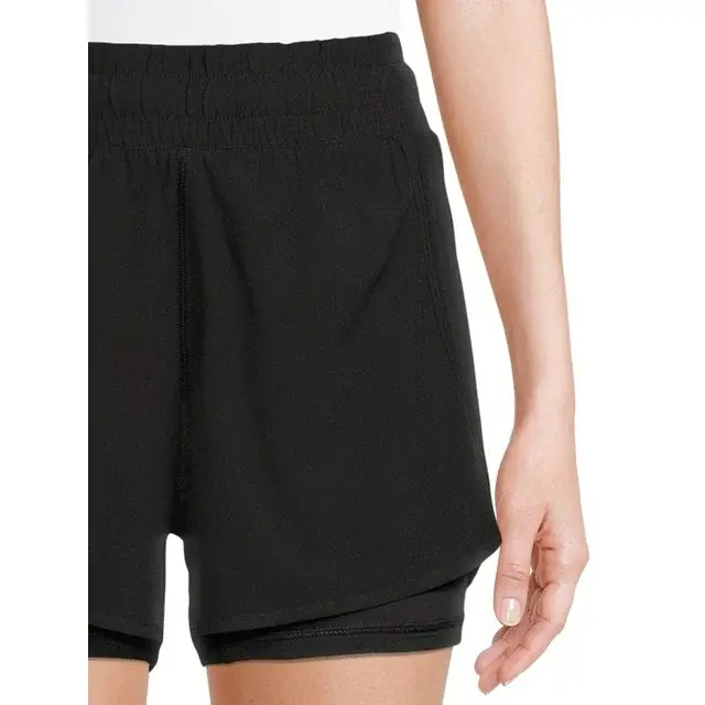 • Features: Woven outer shorts; built-in undershorts; flattering side panels; lightweight