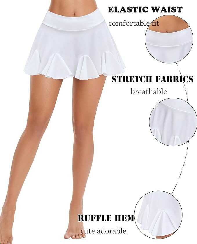 • 【Design】:This short mini skirt features ruffle hem and elastic high waisted waistband, A-line flared silhouette design,It will show your stunning curves.Besides,the stretchy waistband that can easily fit any shape.Perfect to pair with shirts, blouse, vests, crop tops, etc
