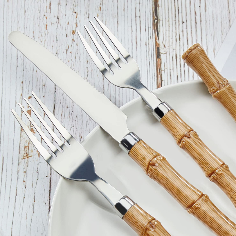 Bamboo Silverware Set, Hoften Bamboo Utensils Set for 4, 20 Piece Flatware