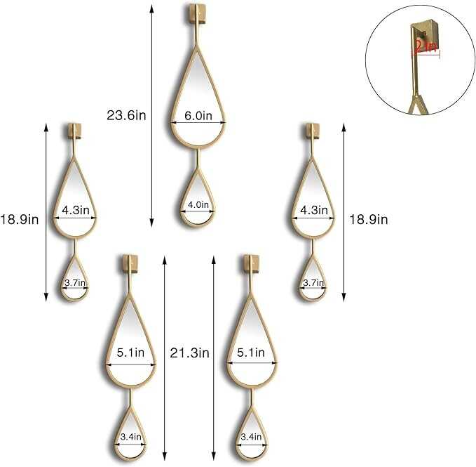 BAODANFU Wall Mirror Decorative Mirrors Mounted Decor Tear Drop Shape Gold for Bedroom Living Room Entryway Bathroom Vanity Brassy Gold Metal Frame, 5-Pack Mirrors Set