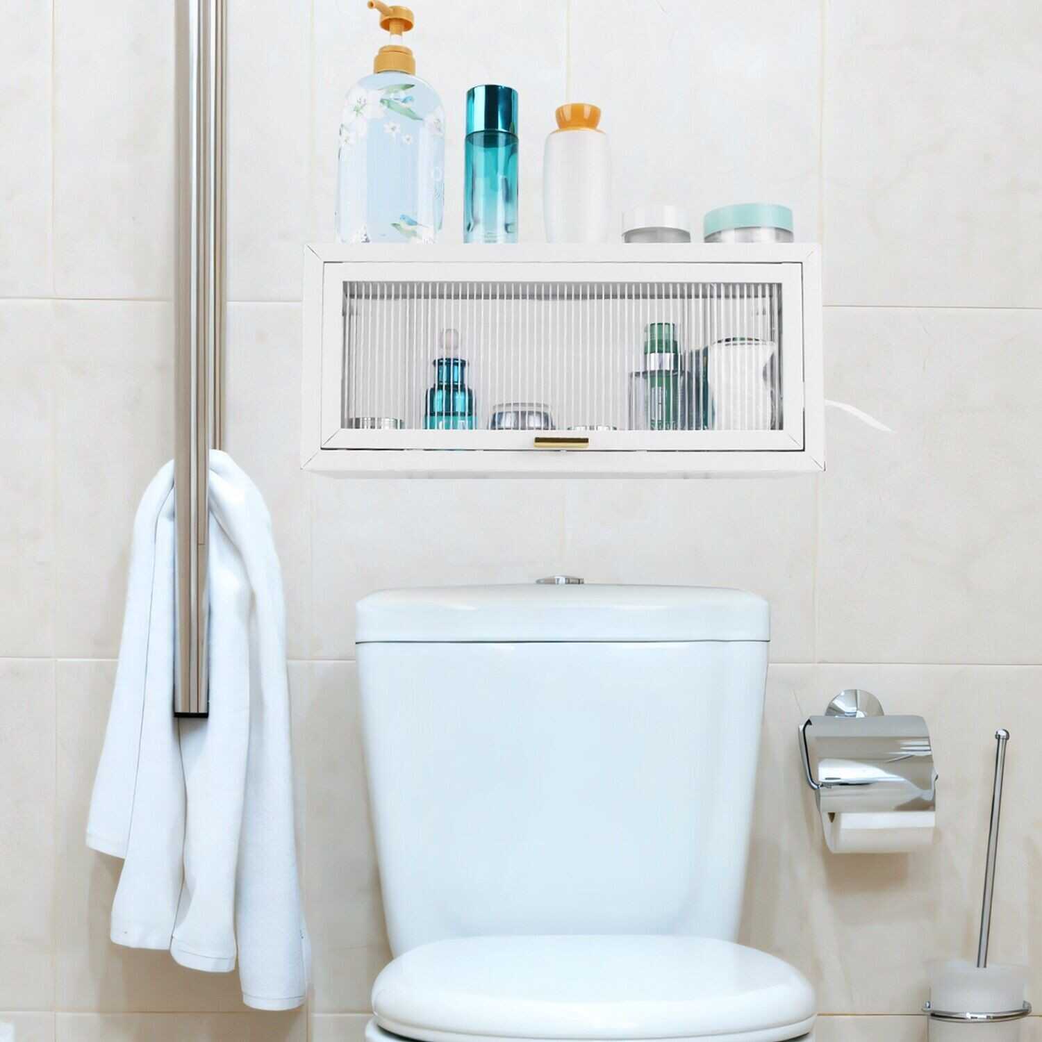 Bathroom Wall Cabinet Magnetic Door Over The Toilet Space Saving Storage Cabinet
