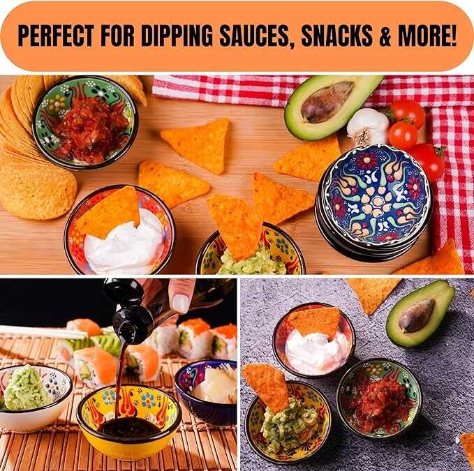 Versatile: Mini bowls are excellent choice for serving all kinds of sauces. Soy sauce, salsa, guacamole, ketchup and more. Additionally, ideal for serving cheese, olives, jam, honey, nuts, dried fruits, condiments, spices and snacks. Suitable to be used as mise en place, prep for cooking, side dish and charcuterie board bowls. Moreover, they can be used for decorative purposes, jewelry holder dish and trinket tray