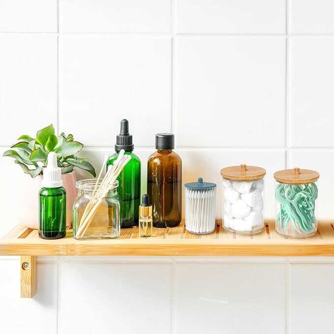 • Versatile Usage: Ideal for makeup & nail polish removal, applying toners and serums, or precision touch-ups. The additional apothecary jars keep your bathroom clutter-free, creating a sleek and organized environment.