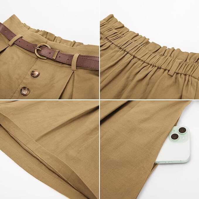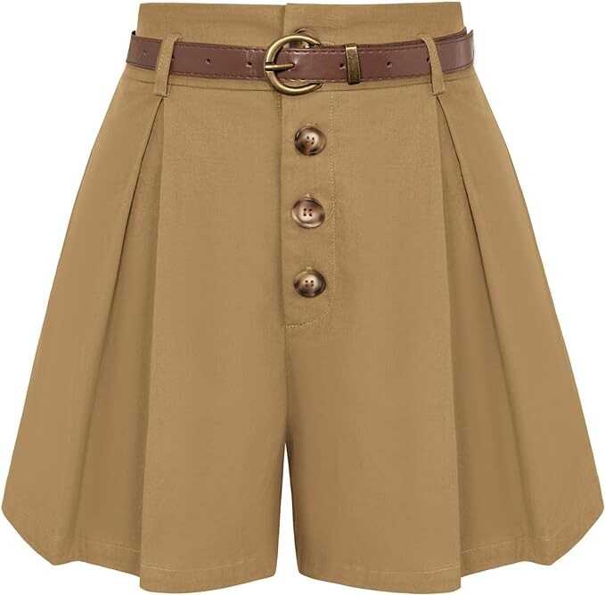 Belle Poque Womens Shorts Dressy Casual High Waisted Summer Pleated Wide Leg Shorts with Pockets and Belt