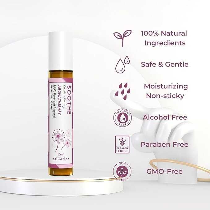 Benatu Soothe Blend Essential Oil Roll On (Infused with Lavender, Geranium, Tangerine Oil)- Travel Size Relaxing Roller for Body Topical Massage, Natural Scent Aromatherapy Gift for Women & Men 10ml