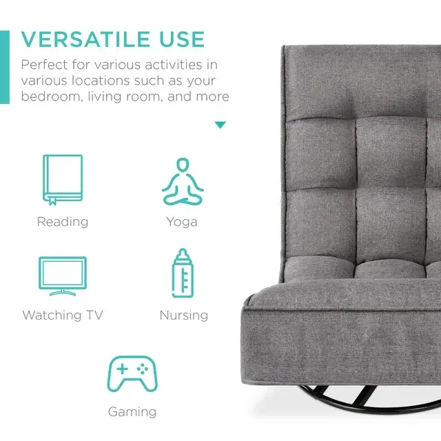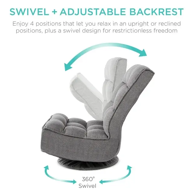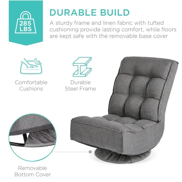 Take a seat in a chair that's both comfortable & fun. Gaming, relaxing, or catching your favorite show - this adjustable chair keeps you comfortable no matter your lounging need! Versatile use makes it perfect for various activities in various locations such as your bedroom, living room, and more. With a 360° swivel function + adjustable backrest, this seat is perfect for yoga, nursing, watching TV, or reading! A sturdy frame and linen fabric with tufted cushioning provide lasting comfort, while floors are kept safe with the removable base/bottom cover. Comfortable cushions are set over a durable steel frame that holds up to 285 lbs. for a durable build, while folding functionality means easy storage in the closet or other compact spaces to keep it out of the way after use. So, look no further for a seat built with a foldable design to suit your needs in any moment.